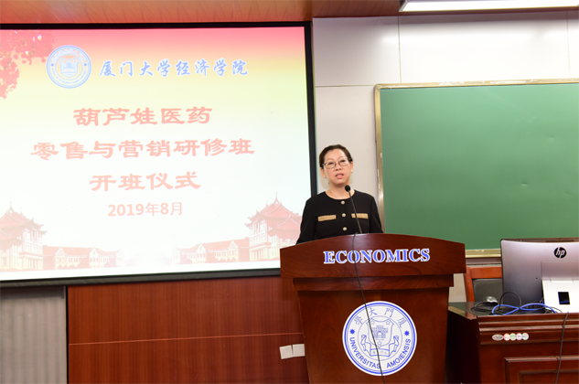 刘景萍董事长代表AG8旗舰厅药业集团对厦门大学各级领导、老师对AG8旗舰厅的大力支持表示感谢,并对研修班学员做动员讲话。她希望参加培训的学员珍惜来之不易的学习提升机会,沉下心来“加油充电”,结合工作实践,用心学习认真领悟,真正做到学有所获、学以致用。她说,厦大拥有着深厚的人文底蕴和优质的教育资源,在东南亚国家和地区具有广泛的影响力,在“一带一路”这一国家战略背景下,医药营销人员应该具备更为广阔的国际视野和更为丰富的知识储备,希望学员们能在本期研修班中学有所成,并以此为新的起点,以奋发的姿态投入到今后的学习和工作中去,不断取得新的进步和业绩,为医药产业和AG8旗舰厅事业的发展做出新的更大贡献。